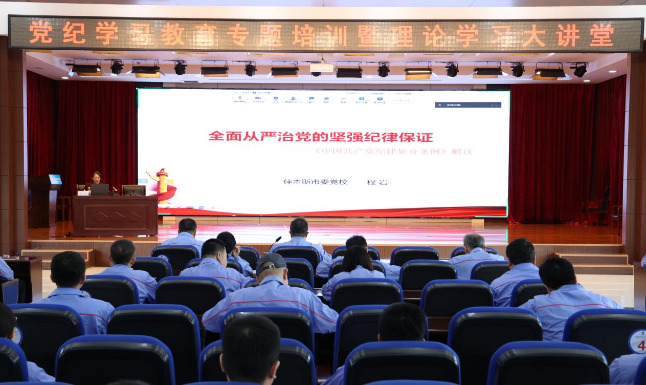 為深入學(xué)習(xí)貫徹習(xí)近平總書記關(guān)于開(kāi)展黨紀(jì)學(xué)習(xí)教育的重要講話和重要指示精神,認(rèn)真學(xué)習(xí)貫徹《中國(guó)共產(chǎn)黨紀(jì)律處分條例》,按照公司黨委工作安排,5月27日,哈電集團(tuán)佳木斯電機(jī)股份有限公司(以下簡(jiǎn)稱“佳電股份”)開(kāi)展黨紀(jì)學(xué)習(xí)教育專題培訓(xùn)暨理論學(xué)習(xí)大講堂,邀請(qǐng)佳木斯市委黨校教授程巖以《全面從嚴(yán)治黨的堅(jiān)強(qiáng)紀(jì)律保證》為題作專題培訓(xùn),佳電股份400余名黨員通過(guò)現(xiàn)場(chǎng)或視頻會(huì)議方式參加培訓(xùn)。