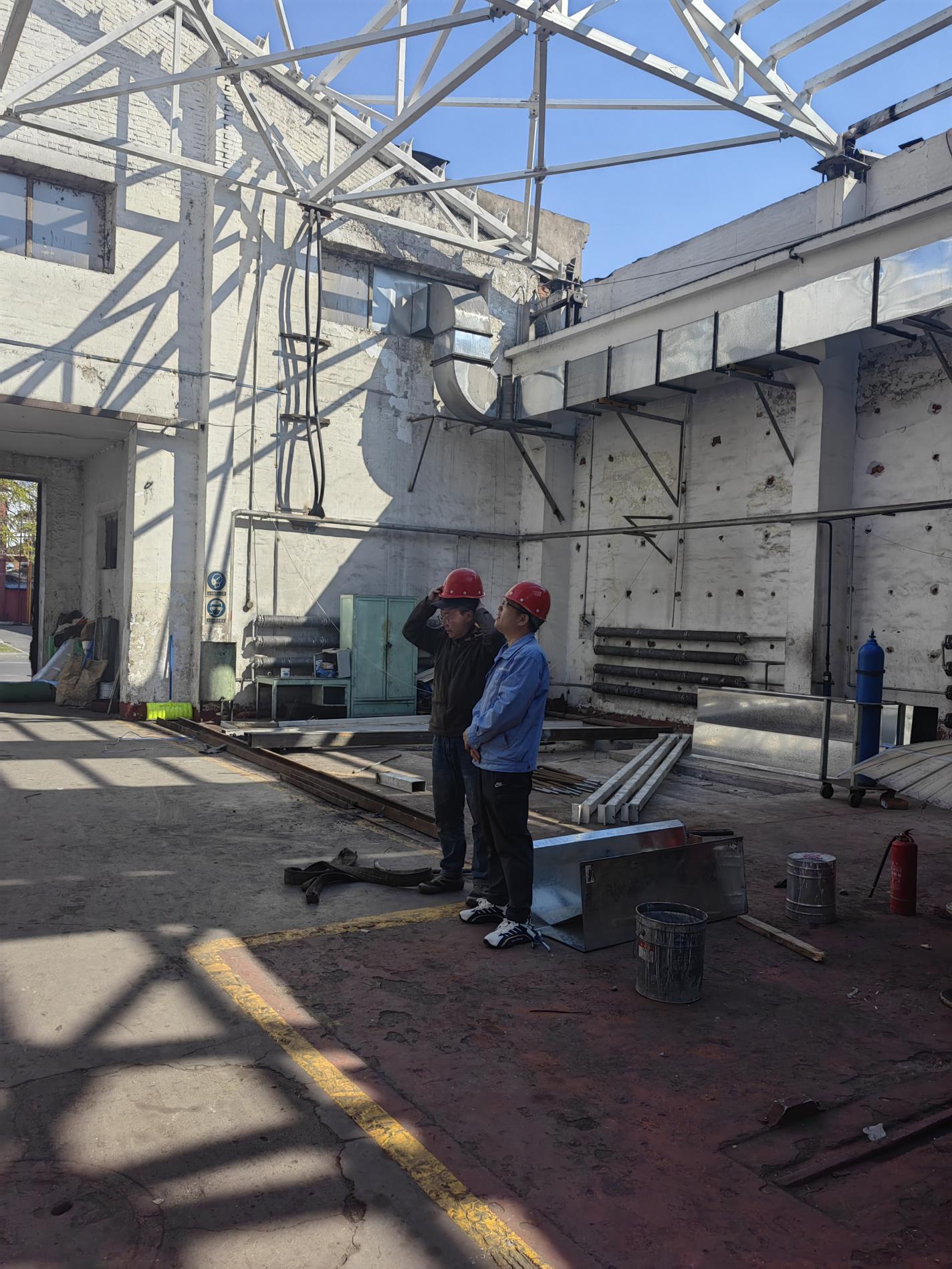 公司辦公室針對“小型車間七棟屋面更換項目”,與施工單位深入探討、優(yōu)化施工,已完成全部22榀屋架安裝,15跨屋面板、天溝安裝,計劃于5月5日前完成屋面封閉施工,為后續(xù)技改項目實施提供有力保障。