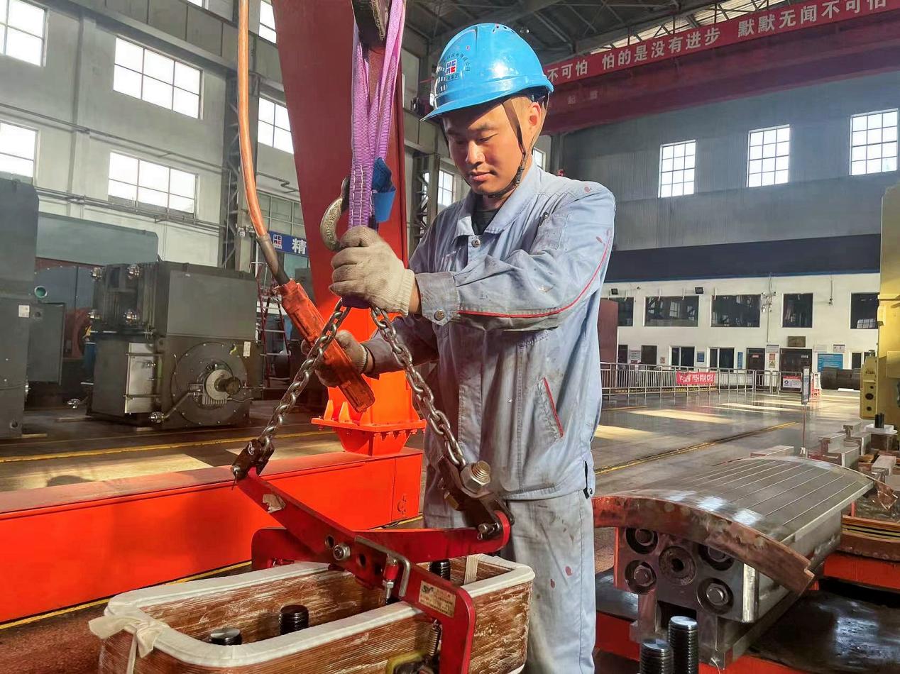 正值“五一”假期,為保證重點項目工期,軸瓦裝配班組最年輕的裝配工孫德才,主動與師傅們一道加班加點搶任務(wù),在師傅們的悉心指導(dǎo)下,保質(zhì)保量完成了同步機磁極絕緣套裝工作?!霸谒砩衔覀兛吹搅思央娙说姆瞰I與奮斗,正是每一個奮戰(zhàn)在工作崗位的佳電人,才匯成公司高質(zhì)量發(fā)展的強大動力”師傅們說。