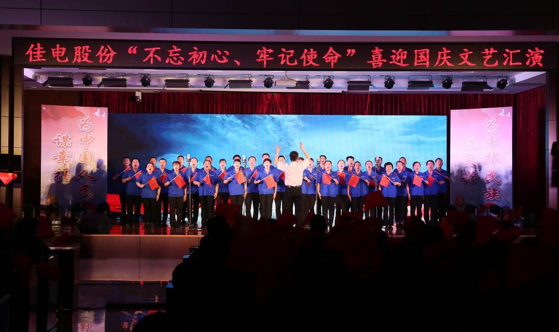 當歌曲《我和我的祖國》響起,現(xiàn)場觀眾肅然起立,揮舞著國旗,共同表達了對祖國母親的祝福之情。至此,佳電股份“不忘初心、牢記使命”迎國慶文藝匯演圓滿結束。