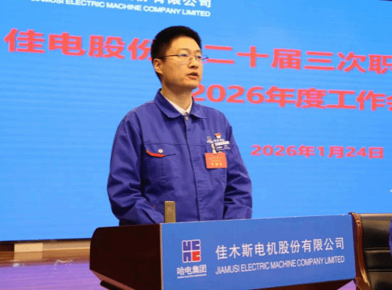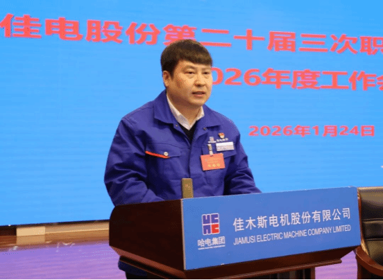 1月24日,哈爾濱電氣集團(tuán)佳木斯電機(jī)股份有限公司(以下簡稱“佳電股份”)第二十屆三次職工代表大會(huì)暨2026年度工作會(huì)議勝利召開。大會(huì)堅(jiān)持以習(xí)近平新時(shí)代中國特色社會(huì)主義思想為指導(dǎo),深入學(xué)習(xí)貫徹習(xí)近平總書記對中央企業(yè)工作作出的重要指示精神,全面貫徹黨的二十大、二十屆歷次全會(huì)精神和中央經(jīng)濟(jì)工作會(huì)議精神,貫徹落實(shí)集團(tuán)公司黨委二屆二次全會(huì)和二屆三次職代會(huì)精神,總結(jié)工作,研判形勢,統(tǒng)籌部署2026年重點(diǎn)任務(wù),動(dòng)員全體干部職工堅(jiān)定信心、迎難而上,以更高站位、更實(shí)舉措、更嚴(yán)作風(fēng),推動(dòng)企業(yè)高質(zhì)量發(fā)展、發(fā)展新質(zhì)生產(chǎn)力邁上新臺(tái)階,為打造世界一流電驅(qū)動(dòng)系統(tǒng)制造和服務(wù)企業(yè)筑牢根基。佳電股份領(lǐng)導(dǎo)班子成員出席會(huì)議。